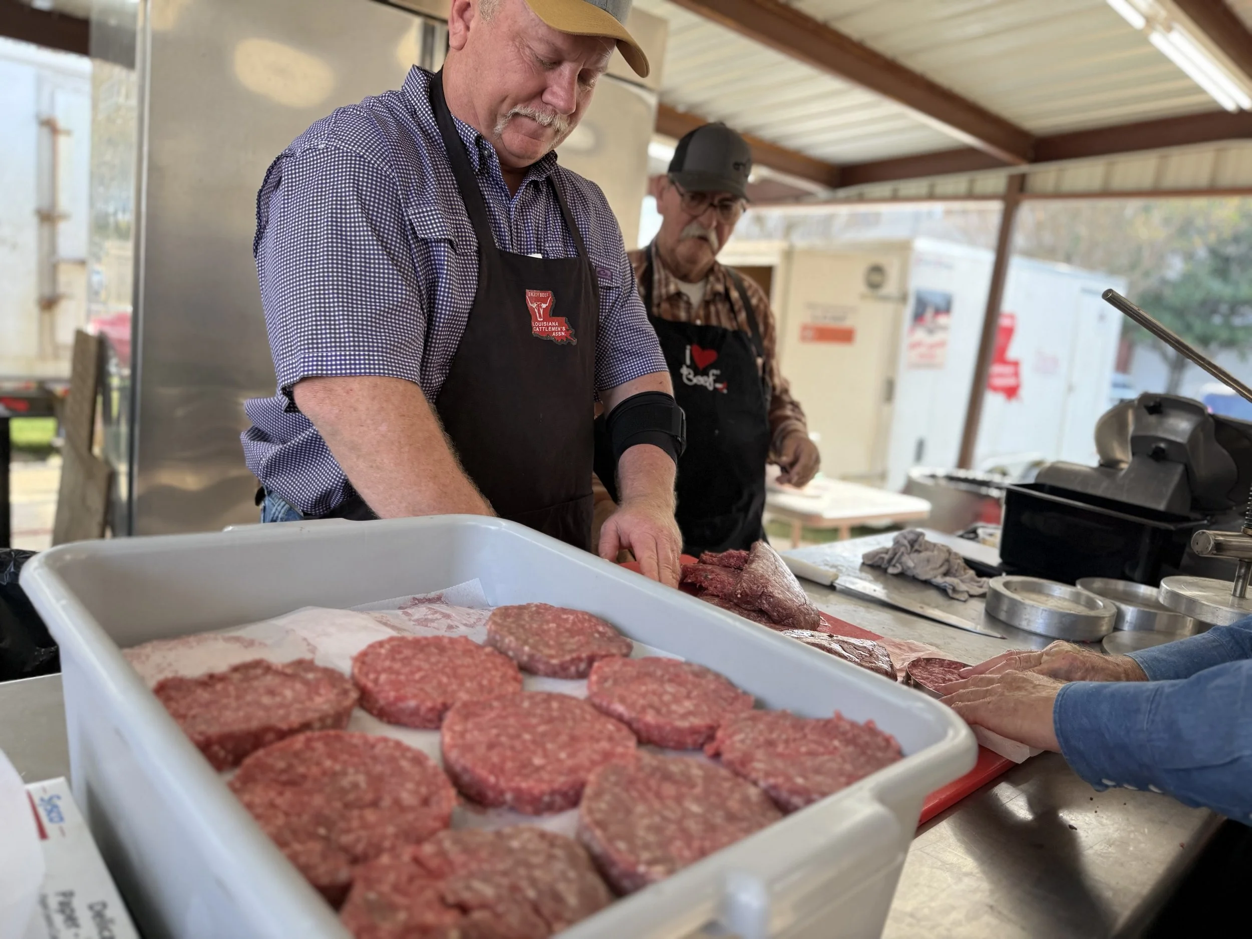 During our visit, Louisiana Cattlemen’s Association President Jared Daigle told me that in recent years they’ve awarded as many as twenty scholarships in a single year. And longtime volunteers like Calvin LeBoeuf shared stories of the early days — when the “kitchen” was just a tent on the fairgrounds and the steaks were cooked over open flames.