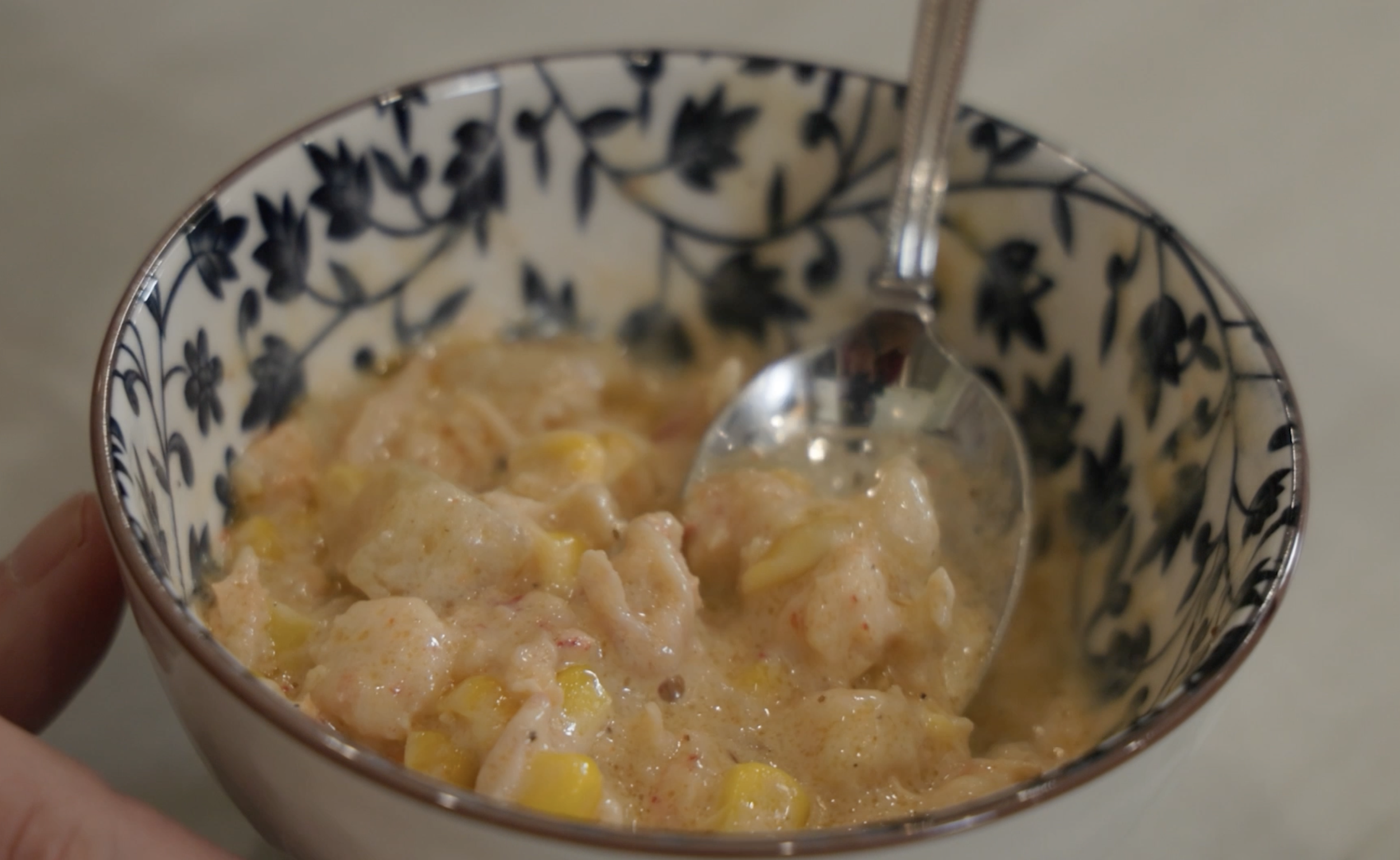 Their dish of choice on this cold day: a hearty crawfish, corn & potato soup.